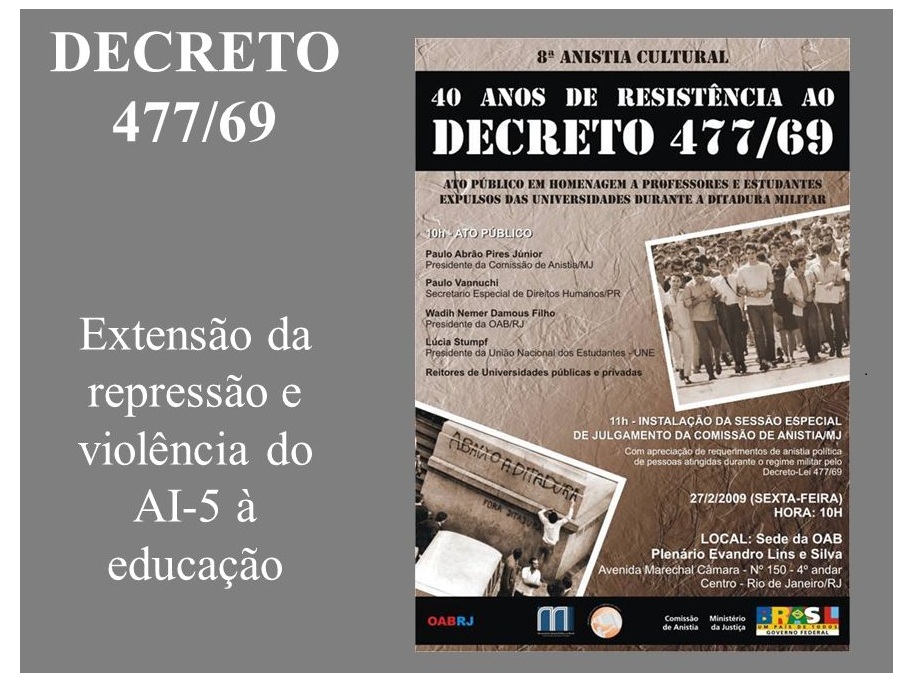 O reitor da UEG encaminhou, então, o processo ao Conselho Federal de Educação (CFE) advertindo sobre a necessidade de “corrigir a lei”, alegando que a punição não podia se transformar em um prêmio. Foi aí que o Parecer aprovado pelo ministro da Educação, coronel Jarbas Passarinho, revisou o decreto, proibindo qualquer universidade de expedir guias de transferência para outros países daqueles estudantes punidos pelo Decreto 477. Para muitos, restava recomeçar a vida no exílio.
