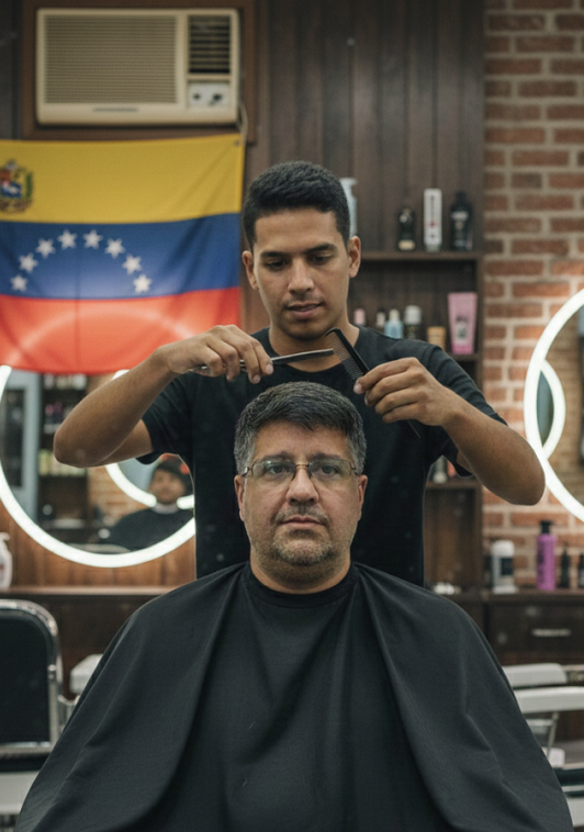 Essa primeira pergunta nunca falha em criar um silêncio espesso, desses que nem o barulho da tesoura consegue cortar. É unânime: saudade. Saudade da mãe, do pai, dos filhos que ficaram, da rua, do cheiro da terra natal, do país que já não existe do jeito que guarda na memória. Alguns respondem rápido; outros precisam respirar antes. Há olhos que marejam, vozes que diminuem. Por alguns segundos, o salão vira Caracas, Maracaibo, Barquisimeto ou qualquer cidade que hoje só cabe na lembrança e que nenhum relatório internacional consegue traduzir.