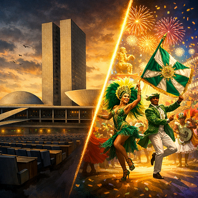 Há uma ironia silenciosa nesse processo. O país passa o ano sendo oficialmente representado pelo Congresso Nacional e pelo Senado Federal — espaços onde o povo frequentemente aparece como abstração. Chega o Carnaval e o povo comparece em corpo inteiro.
